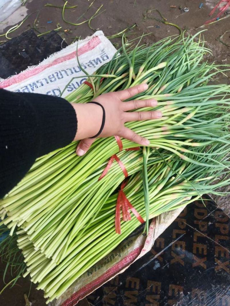> 山东精品蒜薹产地,新鲜红帽蒜苔大量上市,有大型冷库可存放